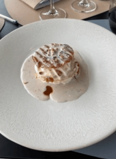 The dessert arrives and the waiter pours the cream over the plate at the table. The layers of mille feuille are crisp, the cream in the middle light and fresh and the sauce with caramel falls into the gap between sweet enough and not too sweet.