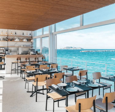 Perched right above the Catalans Beach, Les Bords de Mer has a birdseye view of the action on the beach and a view of the ocean so close you may as well be in a luxurious vessel in the sea. It’s divine. From the street though, the imposing white Art Deco style building catches the eye but does not scream ‘there’s an amazing restaurant here, come try!’. In fact nothing shouts at Les Bords de Mer, being host to also a *5 star hotel and spa, the serenity from above permeates the crisply luxurious dining room.