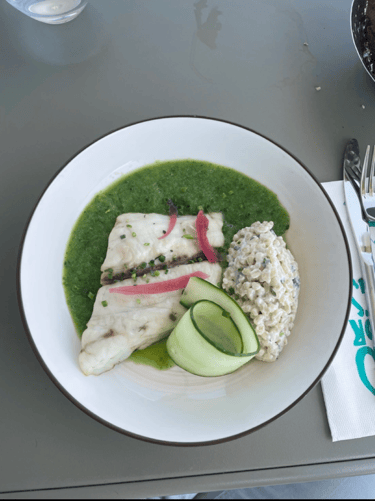 The plat consists of a moist piece of fish with a side of barley in a creamy dressing and a mint and cucumber puree, and this time the reverse is true, the parts on their own are ok, like just ok, but together they sing a symphony of texture and freshness. Looking at the picture afterwards I wish I could eat it again.